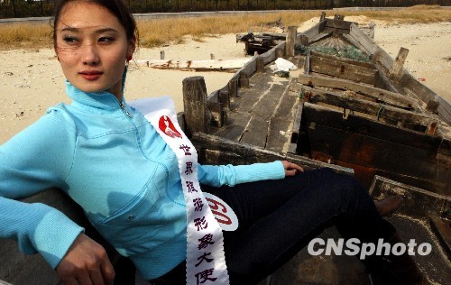 11月24日,选自中国各地的50位佳丽汇聚山东烟台秦始皇养马岛角逐2009—2010年度“养马岛杯”世界旅游形象大使。由亚太旅游联合会、中国对外友好协会等共同发起的世界旅游形象大使冠军总决赛,以人文、生态、和谐、创新为主题,本着弘扬民族文化、传播城市文化品牌、促进旅游业健康发展的精神,提高赛事所在地城市文化的世界影响力。图为世界旅游形象大使佳丽养马岛海滨风采。中新社发 钱兴强 摄