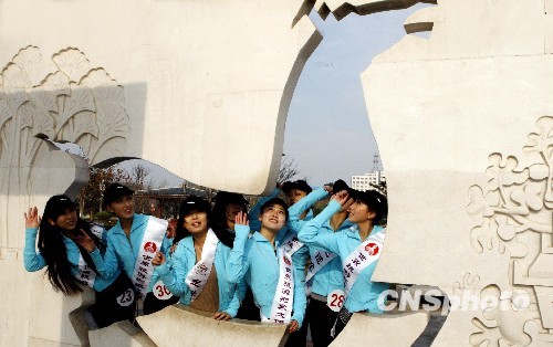 11月24日,选自中国各地的50位佳丽汇聚山东烟台秦始皇养马岛角逐2009—2010年度“养马岛杯”世界旅游形象大使。由亚太旅游联合会、中国对外友好协会等共同发起的世界旅游形象大使冠军总决赛,以人文、生态、和谐、创新为主题,本着弘扬民族文化、传播城市文化品牌、促进旅游业健康发展的精神,提高赛事所在地城市文化的世界影响力。图为参赛佳丽在养马岛马广场展示风采。中新社发 钱兴强 摄