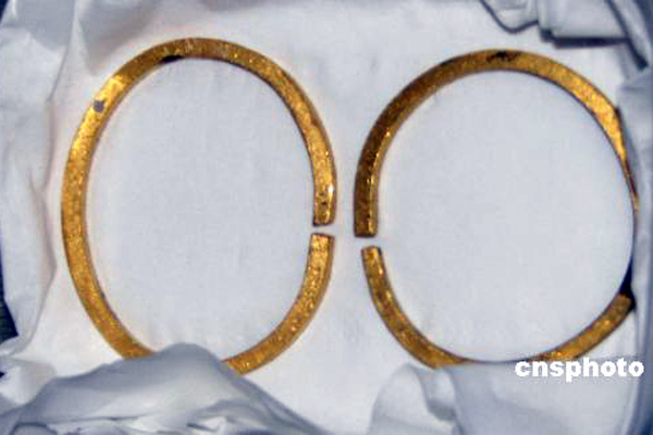 2007年6月7日,国家文物局副局长童明康在广东阳江表示,此前从“南海一号”水下考古现场发现的两只鎏金龙纹环形物,应当不是人们所猜测的巨型手镯,根据他的判断,可能是门或者箱子的把手。 他认为,两只鎏金龙纹环形物十分沉重,作为手镯佩戴的可能性不大。 中新社发 索有为 摄