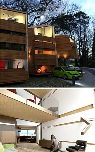 5、“你我他”的木制房:一个名为“你我他”的建筑师团体在伦敦推出了其最新作品。由于英国政府呼吁多设计些6万磅以下的“能让人们负担得起的房屋”,这个木制的简易房屋就是最好的回应。屋主可根据自己的需要搭建房屋,如果家庭比较大,可以多搭几层,并不麻烦,只需多装两块板子。