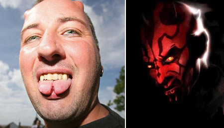 分叉的舌头:加文-帕斯罗是一位保安,他花3552英镑,居然要整成魔鬼的形象。整容手术后,他的舌头分叉,头上长角,嘴里呲出毒牙,他甚至连自己的名字都改为Diable Delenfer。(张晓来)