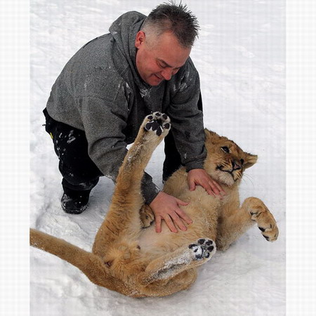 在波兰,像狮子这种危险动物一般来说是不允许当宠物养的,但赖斯塞克-皮兰达却得到了许可,不过安全起见,他必须专门为10个月大的小狮子“辛巴”修建一个围场。