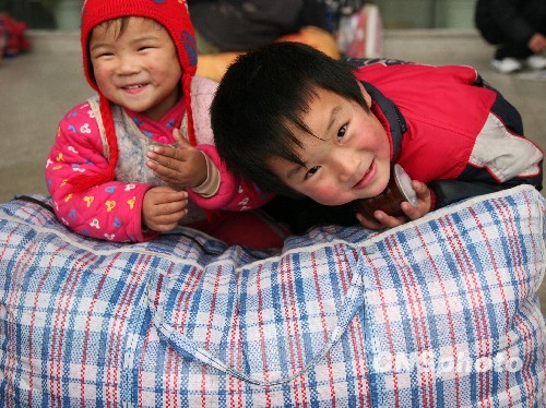 1月31日是2010年春运的第二天,在异乡打工的人们陆续开始返乡旅程,南京火车站里,许多返乡的旅客满怀回家的喜悦。中新社发 钟山 摄
