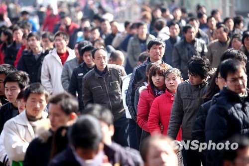 2月20日,河南许昌火车站,外出务工人员排队购票。当日是大年初七,随着春节长假结束,许昌外出务工、返程上班、探亲客流高峰凸显。许昌火车站采取增加售票窗口,延长售票时间,最大限度满足乘客顺利出行。中新社发 牛书培 摄