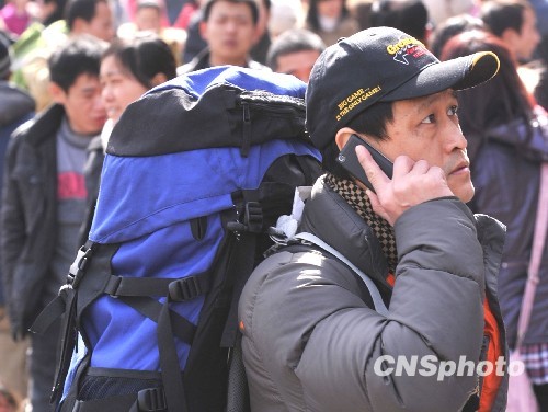 2月18日,大批旅客在郑州火车站依次进站候车返程或出行。据了解,今年春节长假刚接近尾声铁路部门已提前进入旅客春运返程、出行高峰期,今后每天接、送旅客都就将会达到10万人左右。预计2月20日是大年初七之后会有更大的春运高峰呈现,据此,郑州铁路部门已做好充分准备确保旅客安全返程顺利出行。中新社发 刘书亭 摄