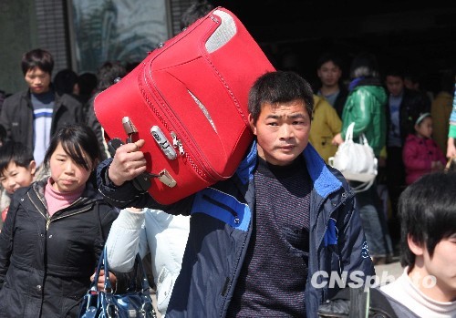 2月20日是农历正月初七,许多民工陆续开始返程,苏州铁路呈现出客流小高峰。中新社发 苏成 摄