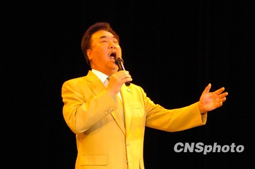 2月22日晚,“文化中国·四海同春”亚洲艺术团在东京有乐町读卖会馆举行抵日首场演出,1000余华侨华人代表观看了祖国艺术团的精彩演出。图为著名男高音歌唱家、中国东方歌舞团国家一级演员刘维维演唱《我的太阳》。中新社发 段跃中 摄