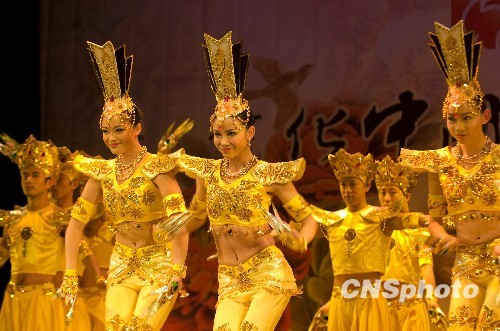 2月22日晚,由国务院侨办组织的“文化中国·四海同春”艺术团在东京有乐町的读卖会馆首演成功。可以容纳一千余人的两层会馆坐无虚席。图为艺术团的千手观音表演。中新社发 孙冉 摄