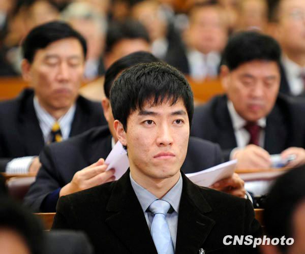 3月3日下午,政协委员刘翔在北京出席全国政协十一届三次会议开幕式。中新社发 廖攀 摄