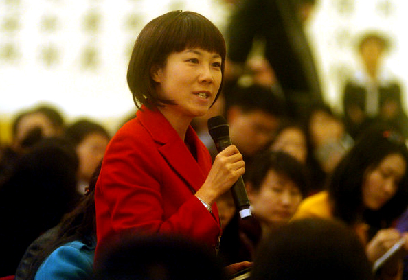 图为全国政协十一届三次会议新闻发布会上提问的女记者。两会大幕开启,新闻大战随之开始。来自四面八方的媒体记者们“各显神通”,猛追新闻点,为了让镜头更美观,也为了引起被采访者的注意,许多记者不约而同的选择了红色报道队伍的“红衫军”人数越来越多。董宁 摄