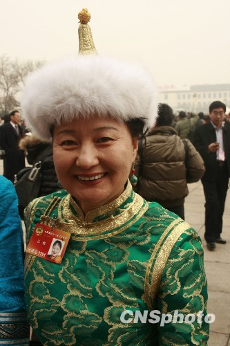 2010年3月3日,来自全国各地的妇女代表们会聚北京参加“两会”。图为全国政协委员杜梅(鄂温克族)出席全国政协十一届三次会议。 中新社发 金立冬 摄