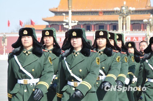 3月10日,北京天安门广场安保措施严密,确保全国两会顺利进行。中新社发 孙洪杰 摄