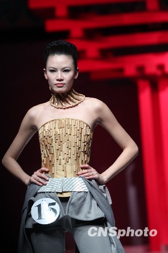 3月25日下午,由中国服装设计师协会和汉帛(国际)集团主办的“汉帛奖”第18届中国国际青年设计师时装作品大赛,作为中国国际时装周2010/2011秋冬系列发布的开幕式在北京饭店举行。来自19个国家和地区的青年设计师参加本次比赛。中新社发 陆欣 摄