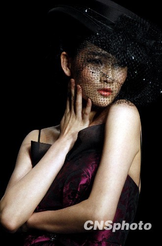 3月28日,在北京举行的中国国际时装周2010/2011秋冬系列发布会上,举行香港著名时装设计师何国钲《海市蜃楼》专场展示。图为模特展示何国钲设计的作品。中新社发 钱兴强 摄