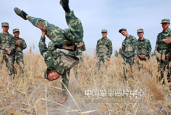 他们具有鹰的速度,狼的耐力,豹的敏捷;他们身经百战,以一抵十。他们就是武警兵团指挥部被誉为“军中尖刀”的特长兵。4月5日,来自基层部位80多名特长兵在教导队进行了“争当忠诚卫士,苦练军事技能当尖兵的大比武”活动,让一批神射手、神投手、爆破手、通信能手、散打高手、擒拿手等小能人脱颖而出,通过不断摔打这批特长兵,逐渐显示他们在部队中的特殊作用,进一步提高了部队遂行多样化任务的能力,圆满完成上级赋予的各项任务。图为特长兵在比武中的一组镜头。李海 摄