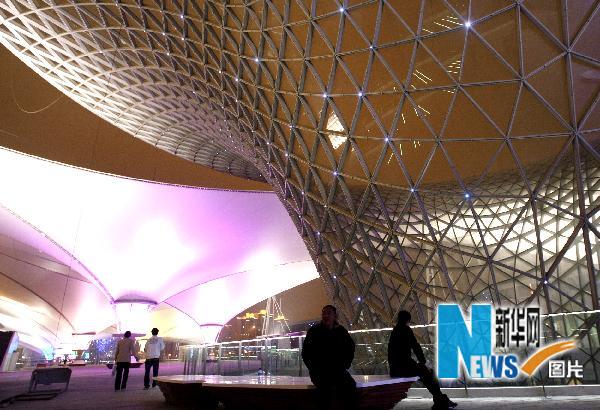 流光溢彩的世博轴景区(4月19日摄)。陈飞 摄