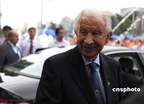 2008年8月21日,国际奥委会终身名誉主席萨马兰奇先生出现在北京奥林匹克公园。中新社发 王东明 摄