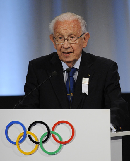 萨马兰奇2009年为马德里申奥陈述。图片来源:新华网