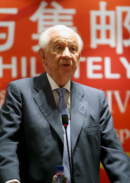 2007年6月24日,由《文明》杂志社出版、中国集邮总公司监制的“新北京·新奥运”系列珍藏特刊IV《奥林匹克与集邮》首发仪式在德胜文化中心举行。国际奥委会终身名誉主席萨马兰奇,国际奥委会委员、国际奥委会文化与奥林匹克教育委员会主席何振梁出席首发仪式并为该书作序。图片来源:北京奥运官方网站 张宇 摄