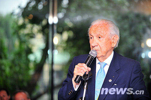 2008年8月10日,国际奥委会终身名誉主席胡安·安东尼奥·萨马兰奇在北京获得美国休战基金会颁发的特别奖项,该基金会称赞萨马兰奇推广“奥林匹克休战”理念,为世界和平做出了巨大贡献。这是国际奥委会终身名誉主席萨马兰奇在致辞。图片来源:新华网 文涛 摄