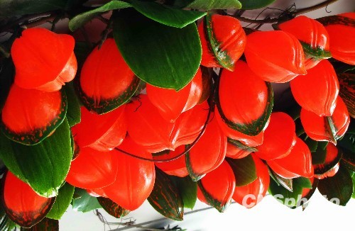 英国馆天花板上生长着的奇怪“植物”。 中新社发 井韦 摄