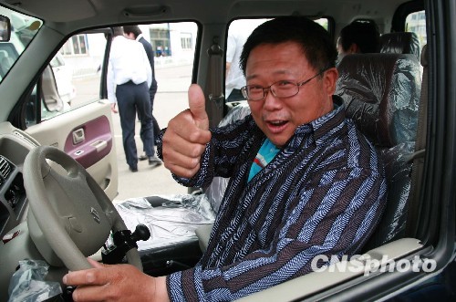 5月16日,肢残人驾车体验基地正式挂牌。由沈阳市肢残人协会举办的首次肢残人驾车体验活动在沈阳市交通经济汽校举行。据汽车厂方介绍,肢残人专用车操作非常简单、安全,耗油量特别低。中新社发 黄金昆 摄