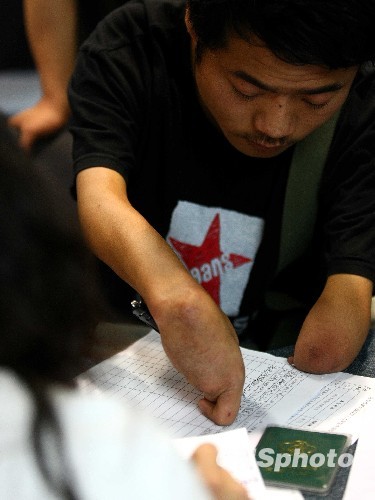 5月16日,在第二十个“全国助残日”来临之际,残疾大学生专场招聘会在北京人才大厦举办,现场涌入了来自北京以及全国各地的数百余名残疾大学生和残疾求职者。包括松下、IBM、麦当劳在内的48家用人单位带来近600个颇有吸引力的热门就业岗位与残疾大学生现场双选。中新社发 富田 摄