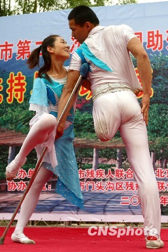 5月14日,北京市第二十次“全国助残日”主题活动启动仪式在北京门头沟军庄镇孟悟村扶贫助残基地举行。今年助残日的主题是“加大扶持力度,关爱农村贫困残疾人”,主要活动为“一体检、二结对、三下乡”。图为在启动仪式上,由来自北京市残疾人艺术团的演员为观众献上精彩节目。中新社发 富田 摄