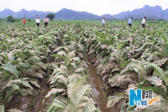 5月23日,江西赣县韩坊乡梅街村被洪水淹过的烟田。图片来源:新华网 朱建华 摄