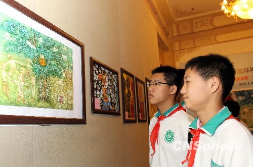 5月30日,“绿色环境·健康家园”全国少儿版画展发布会在北京举行。此次全国少儿版画展是第三届“中国环境与健康宣传周”系列活动之一,将于6月1日在享有“中国少儿版画之乡”美誉的江苏省东海县正式开展。该画展旨在拓展对少年儿童群体进行环境与健康教育相结合,以取得更好的宣传教育效果。中新社发 王磊 摄