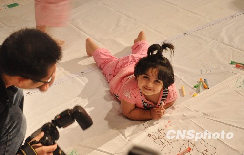 5月30日,亚洲儿童艺术展在北京开幕,中外嘉宾和多国小朋友在桥艺术中心欢聚一堂。中新社发 贾振 摄