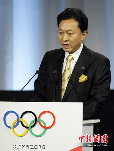 因美军在冲绳的普天间基地转移问题,日本首相鸠山由纪夫,2日早上在民主党参众议员大会中正式宣布辞去日本首相职务。图为2009年10月2日,丹麦哥本哈根,鸠山由纪夫参加国际奥组委第121次全会,助威东京申办2016年奥运会。