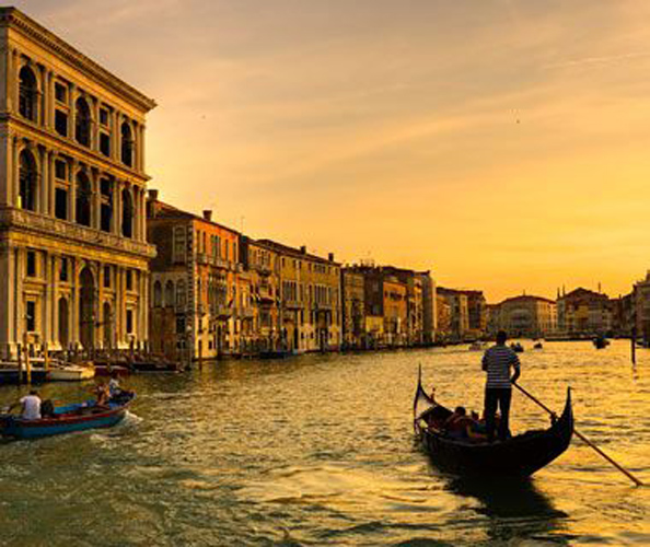 威尼斯享誉“世界最浪漫城市”,而当中观日落最罗曼蒂克的莫过于大运河的Accademia桥了。从这里,夕阳西下衬托着周围15世纪的古建筑物。夏日空气清新,五彩缤纷的色调最为显著;但冬雾弥漫的时候,也有一股庄严的美。