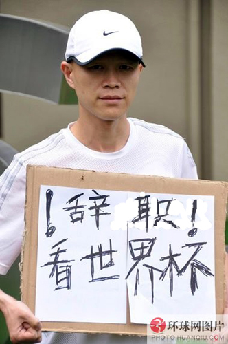 对很多球迷来说,不得不面临一个痛苦的选择,那就是既不想耽误工作,又想全程观看世界杯。2010年6月,江西30名球迷用自己的方式找到了办法,那就是辞职当“飞特族”。