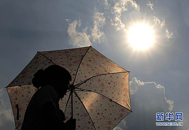 7月4日,广州街头的行人纷纷打起遮阳伞。当日,广州热浪烤城,最高气温达到36℃。从7月2日12时起广州启动高温Ⅳ级应急响应。据气象部门预计,由于受副热带高压控制,未来几日广东将持续高温。卢汉欣 摄