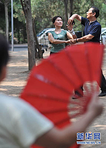 6月30日,在济南泉城公园,市民在树荫下健身。当日10时20分,山东省气象台解除连续三天的高温橙色预警信号。郭绪雷 摄