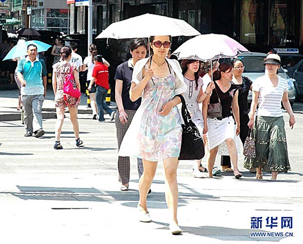 6月25日,行人顶着烈日行走在长春街头。当日,长春最高气温达到35摄氏度。6月23日吉林省气象台发布高温黄色预警信号,预计24日至26日吉林全省将出现持续高温天气,极端气温可能达38摄氏度。肖潇 摄