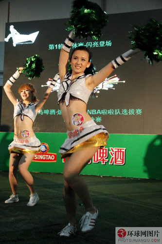 热情开朗、活力四射、能歌善舞的运动美女依然锐气不减。她们都将有机会进入全国常规赛,与其他赛区选手争夺赴美国接受专业拉拉队培训、登上NBA表演舞台的机会。因“非诚勿扰”而走红的马伊咪也作为贵宾评委来到了现场。
