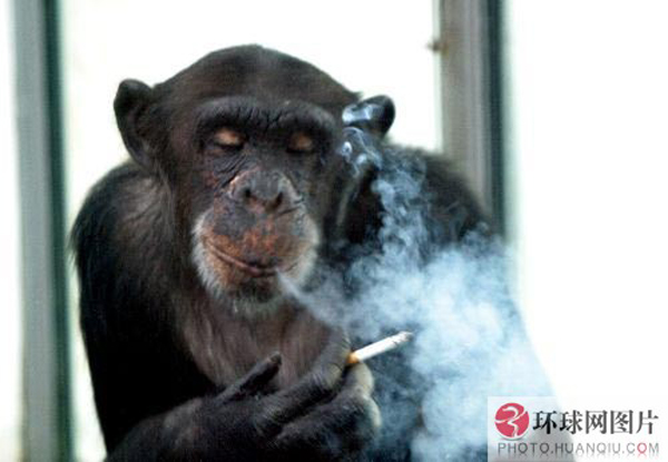 母猩猩为旧爱染烟瘾16载 2005年,西安秦岭野生动物园一只名叫“艾艾”的母猩猩16年前痛失原配“丈夫”之后,一度心情郁闷而染上烟瘾;1997年,陪伴了它7年的“后夫”又因病去世,加上一个孩子远“嫁”到沈阳,一个孩子不幸死去,使得“艾艾”在孤独和寂寞中变得烟瘾一天比一天大。看来,“借烟消愁”已经不是人类独有的嗜好了……