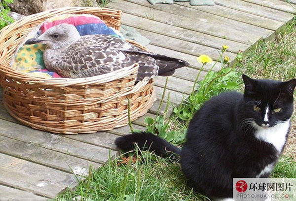英国糊涂海鸥以为自己是猫 与猫生活3年 2010年7月,英国西萨塞克斯郡一对家住海滨的夫妇收养了一只从烟囱里掉下来的幼年海鸥,几年来它都和3只家养的猫一起吃猫食,睡猫窝。长大之后,这只海鸥搬到了房顶,和一只母海鸥共同生活,但仍然每天3次敲门回家,吃它钟爱的猫粮。