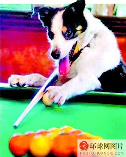 英国牧羊犬竟爱打台球 2008年3月,英国萨罗普郡巴斯丘奇市有一只12岁的伯德牧羊犬有一个奇怪“癖好”:它竟然爱好打台球。这只伯德牧羊犬名叫伯鲁,和41岁的建筑承包工主人杰夫·戴维斯一家生活在英国萨罗普郡巴斯丘奇市,当它还是一只6周大的小狗时,杰夫一家就开始收养它了。但令杰夫意想不到的是,不管他做什么事,牧羊犬伯鲁都爱模仿他。由于他经常在酒馆中打台球,没想到10岁的伯鲁从此竟然也爱上了打台球。