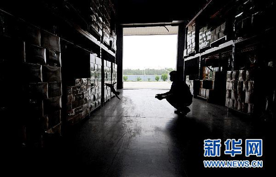 刘建国在仓库里准备喂食一只“潜伏猫”。姚剑锋 摄