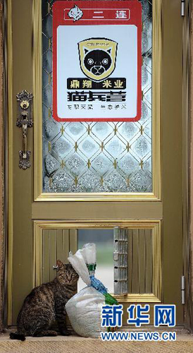 一只猫咪守在“猫兵营二连“的门口。姚剑锋 摄