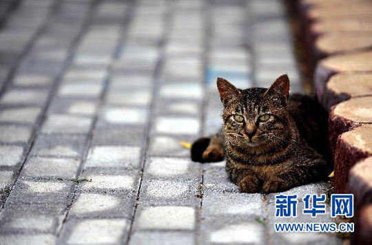 一只潜伏猫潜伏在仓库墙边。姚剑锋 摄