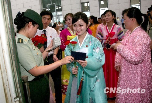 7月21日上午,朝鲜血海歌剧团《红楼梦》剧组的197名演职人员,从辽宁丹东边防检查站开启的特别通道办理出境手续,乘坐丹东至朝鲜新义州至平壤的专列通过中朝友谊桥回国,结束在中国历时两个多月、13个城市的巡演。