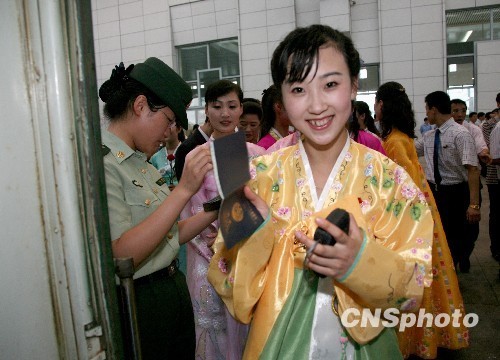 7月21日上午,朝鲜血海歌剧团《红楼梦》剧组的197名演职人员,从辽宁丹东边防检查站开启的特别通道办理出境手续,乘坐丹东至朝鲜新义州至平壤的专列通过中朝友谊桥回国,结束在中国历时两个多月、13个城市的巡演。