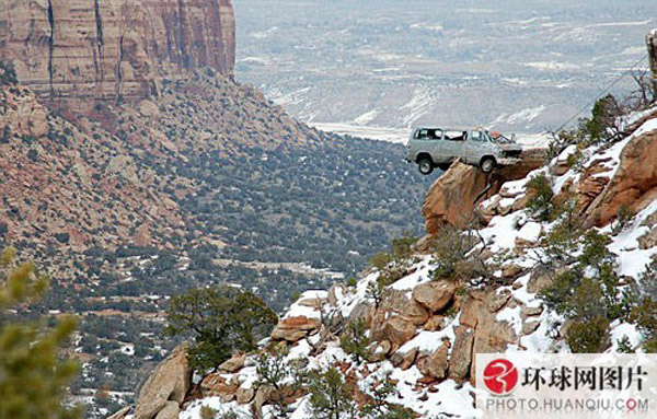 据英国媒体报道,美国一名男子近日开车差点坠入科罗拉多国家保护区附近的山崖,所幸被一大块巨石拦住,汽车一半悬空在170英尺高的峭壁上,场面极其惊险,救援人员及时赶到,该男子死里逃生。