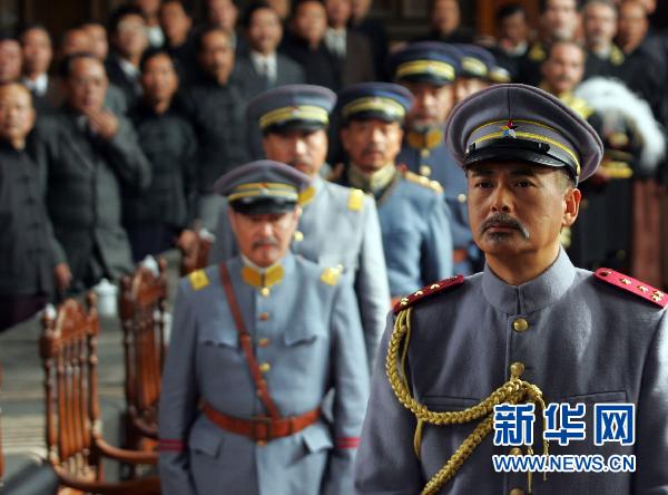 目前,电影《建党伟业》剧组已从北京转至天津。该影片因邀请了不少当红影视明星而备加引人关注。 10月5日,周润发(前)在电影《建党伟业》中饰演袁世凯。