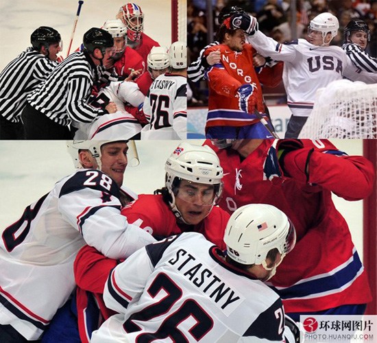 2010年2月19日,冬奥会冰球比赛继续进行,美国队与挪威队在场上爆发冲突。