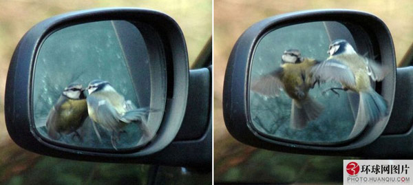 对于人类来说,照全身镜可能会因为看到令人不满意的地方而失望,但是对于山雀来说并非这样。2009年11月,一只英国伯恩利的山雀在盯着镜子数秒钟后,它开始拍打自己的翅膀以攻击镜子中的“敌人”,抓拍到这一切的摄影师称:“这个过程十分快,以致你很难明白到底在发生什么事情。”